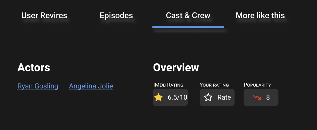 3. It was difficult to compress all the buttons on the IMDb webpage into the new design system. However, the result highlighted a hierarchy of information.